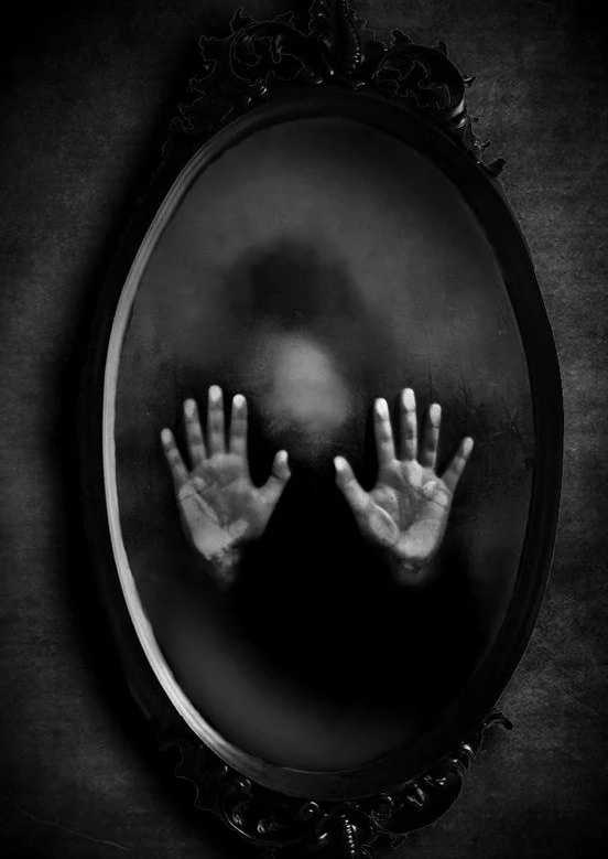 It is believed that the reflection of a crying person opens the door to otherworldly entities susceptible to strong negative emotions.