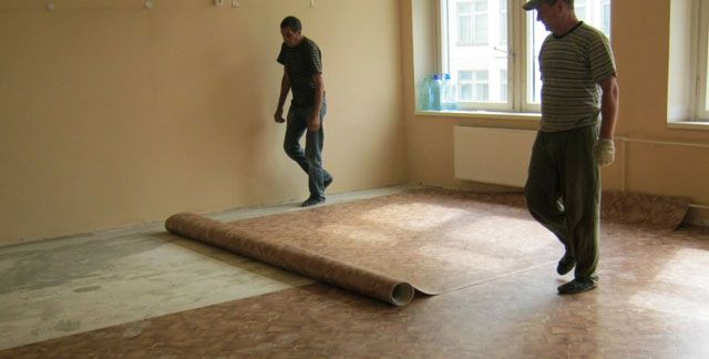- the old covering should be laid on a flat screed, and the linoleum laid along the relief of concrete slabs, as was often done in Soviet times, should be dismantled;