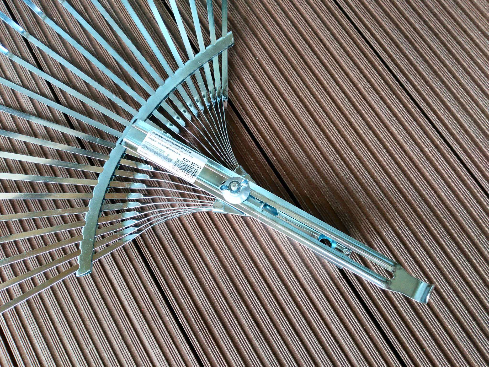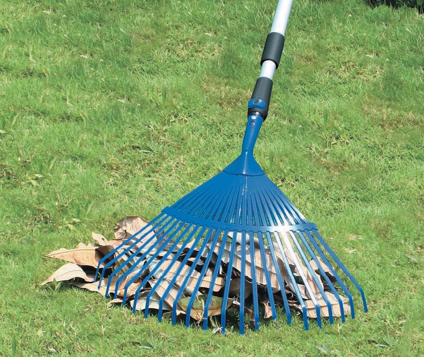 - Lamellar. Lightweight V-shaped design with a transverse holding bar. Quickly and easily rake up grass, dry leaves and other debris into neat piles. The metal teeth are flexible and movable, adapt to any landscape and do not harm plants.