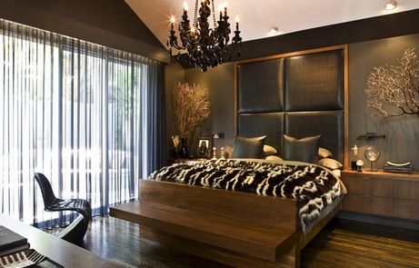 Monochrome design will be appreciated by lovers of a combination of modesty and elegance. For example, a white bedroom can be complemented with black elements. These could be dark inserts on the bed or bedside tables, or a minimalist wardrobe. To decorate the wall at the head of the bed, a lace ornament made in this palette is suitable.