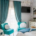 Calm curtains soften the contrast of the space. This allows you to cover the entire wall, if desired, which is important for the bedroom, especially if you need to hide imperfections such as radiators.