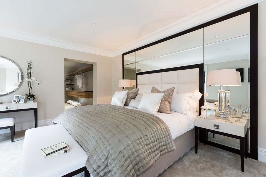 Low cabinets and poufs are selected to match the tone of the bed. They can be on forged legs, upholstered in velvet or brocade. There must be a low table, a coffee table or a coffee table.