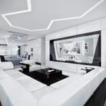 - Feature: Each furniture should clearly stand out against the general background. Geometric patterns on wallpaper. Black and white photographs on the walls. Multi-level ceiling compositions give out this style. Furniture should be decorated with ornaments. Bedside tables and a coffee table must be present in this style.