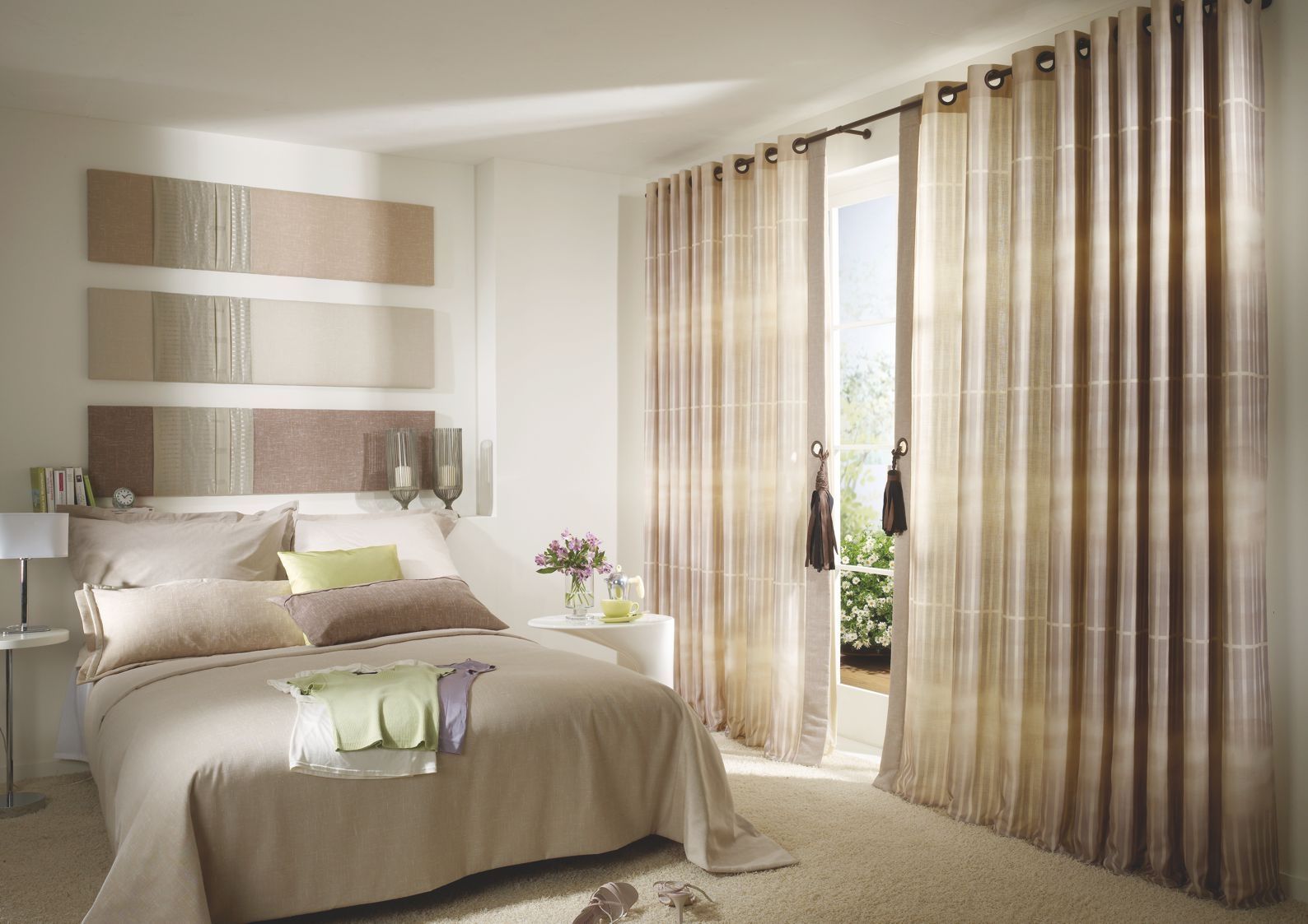 - To make the room warm and spacious, choose light colors of wallpaper or paint. Pastel colors look great. You should not choose red, black and lilac shades for the bedroom. It will heat up the situation and make the room gloomy.